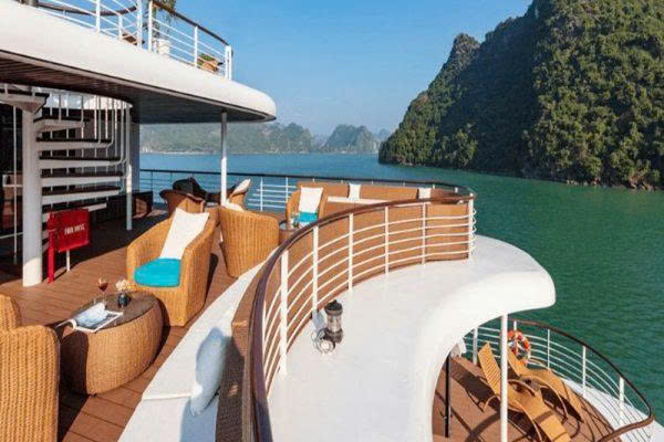 Sailing through the breathtaking Ha Long Bay, the cruise provides access to major attractions such as Sung Sot Cave, Ti Top Island, and Luon Cave. Guests can explore limestone caves, hidden lagoons, and the natural beauty of this UNESCO World Heritage Site.